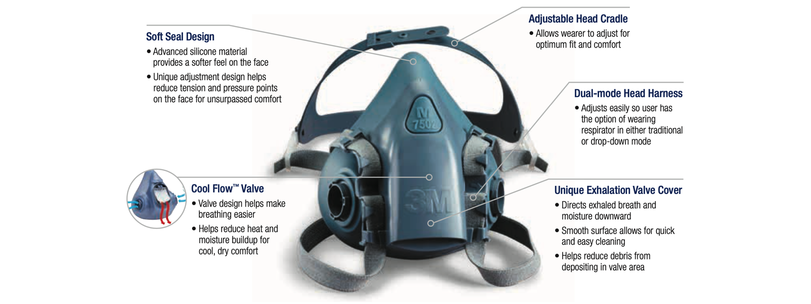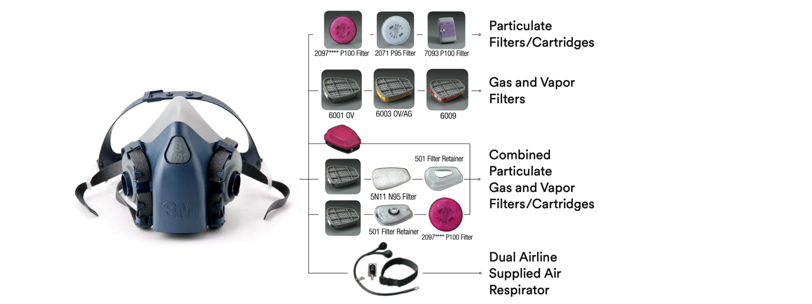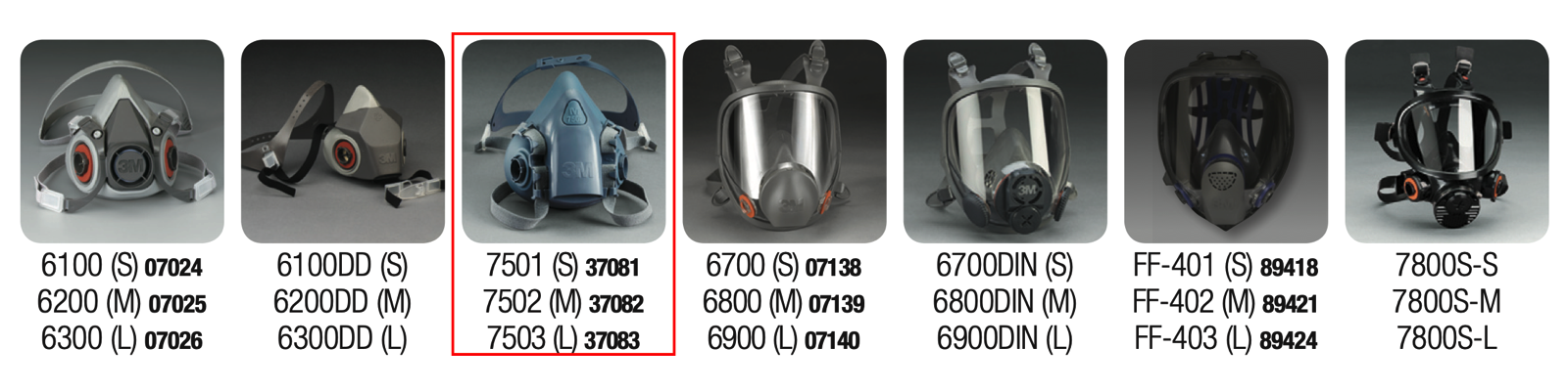 Để đáp ứng nhu cầu phòng tránh những rủi ro do bụi và khí độc hại gây ra, hãng 3M sản xuất các dòng mặt nạ khác nhau. Một trong những dòng mặt nạ được tin dùng và ưa chuộng là dòng mặt nạ nửa mặt 7500, bao gồm các sản phẩm: 7501 (size nhỏ), 7502 (size vừa) và 7503 (size lớn).