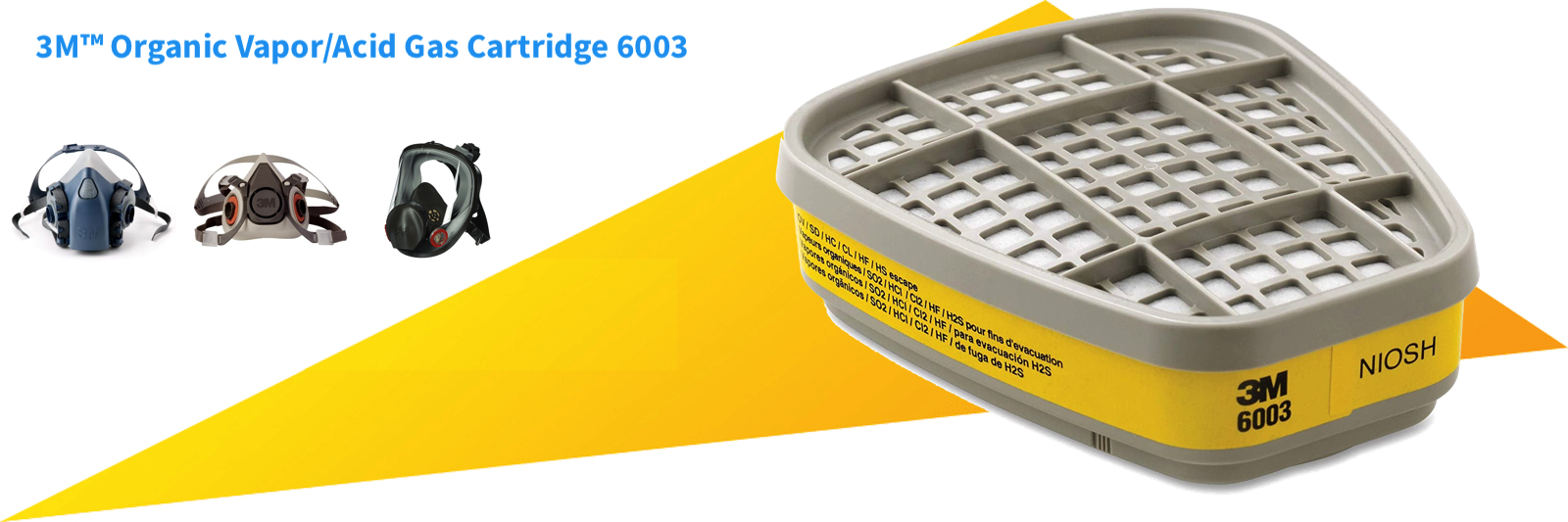 Phin 3M 6003 được tổ chức NIOSH xếp loại là phin lọc hơi hữu cơ / khí a-xít.