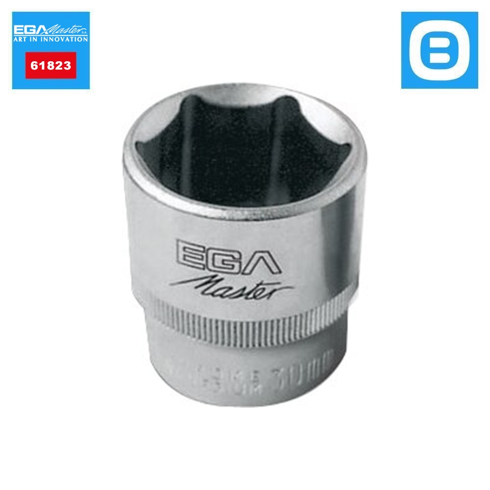EGA Master 61823, Socket wrench 1/2" 32mm standard 6 edges DIN 3124, Đầu tuýp 1/2 inch 32mm tiêu chuẩn 6 cạnh DIN 3124, 210 gram, Màu bạc